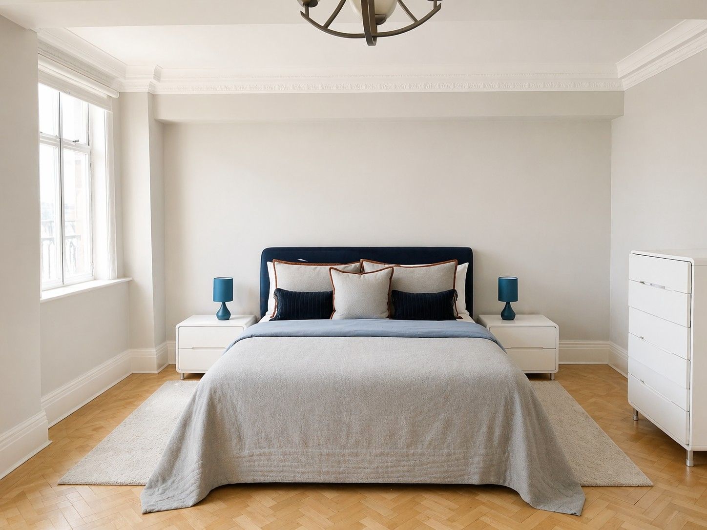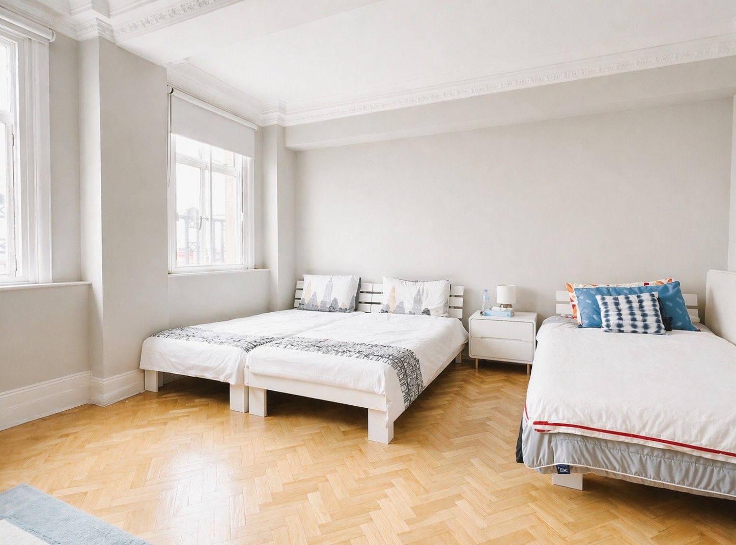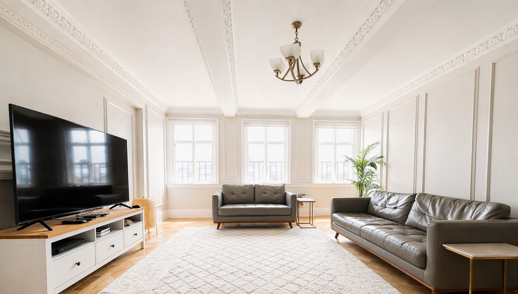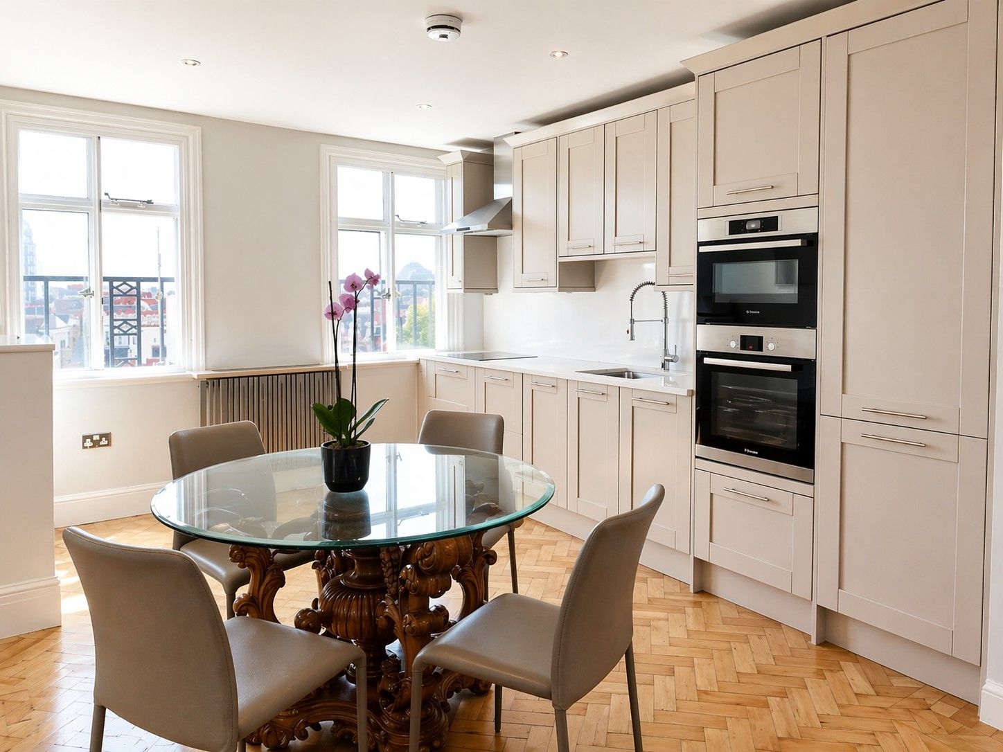 The apartment has been meticulously refurbished to an exacting standard and is elegantly presented throughout. It features a spacious eat-in kitchen, an impressive reception room ideal for entertaining, three generously sized double bedrooms, and two contemporary bathrooms. Wooden flooring and a refined neutral palette enhance the sense of space, style, and sophistication.