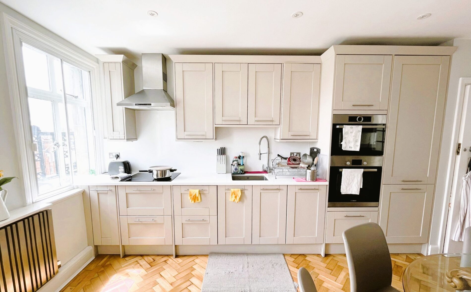 This beautifully furnished flat is situated on the top floor, accessible via a lift, in one of the most sought-after blocks in Marylebone. Enjoying a south-facing position, the flat offers breathtaking views of Central London and an abundance of natural light. It features a spacious eat-in kitchen, a vast living room, three double bedrooms, and two bathrooms, all finished to a remarkable standard. With wooden floors throughout and neutral decor, this flat exudes elegance and sophistication.
