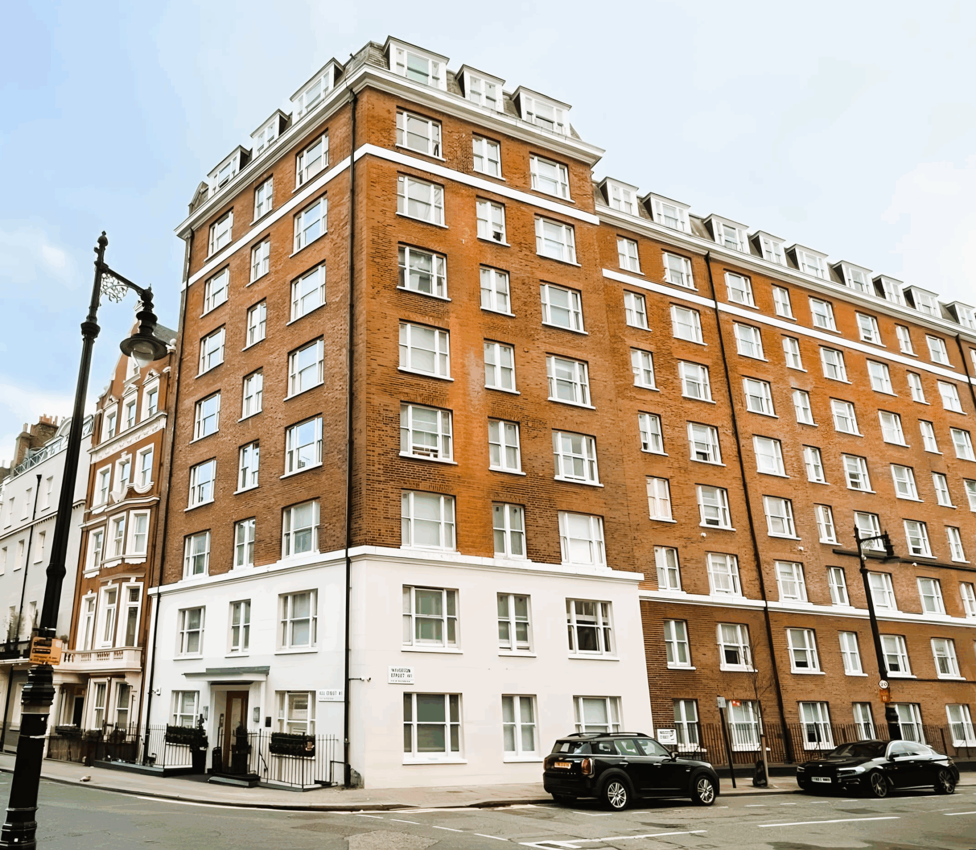 Luxurious three-bedroom apartment in an elegant red brick building in Mayfair.