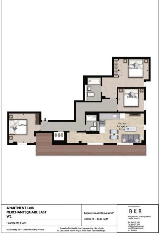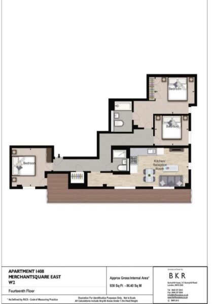 The bright and airy living space comprises a beautifully designed reception room seamlessly connected to a modern, open-plan kitchen. With three generously sized bedrooms and two well-appointed bathrooms, this apartment offers both comfort and style.
