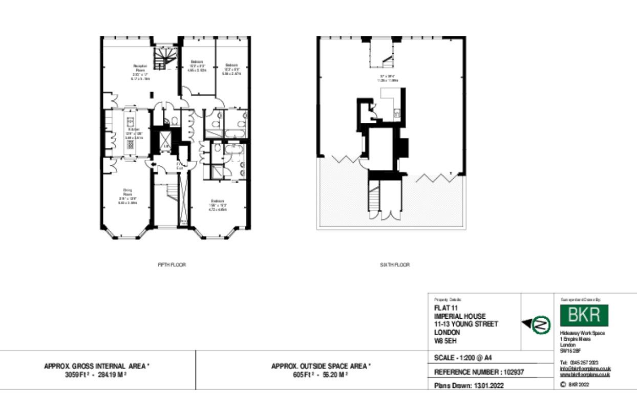 A stunning customized glass staircase offers uninterrupted double-height views across London, guiding you to a unique entertainment and relaxation space boasting several lavish areas and comfortable dining for 10 people. The open-plan layout seamlessly integrates with two stunning outdoor seating areas, accessible through multiple Bi-Folding doors.